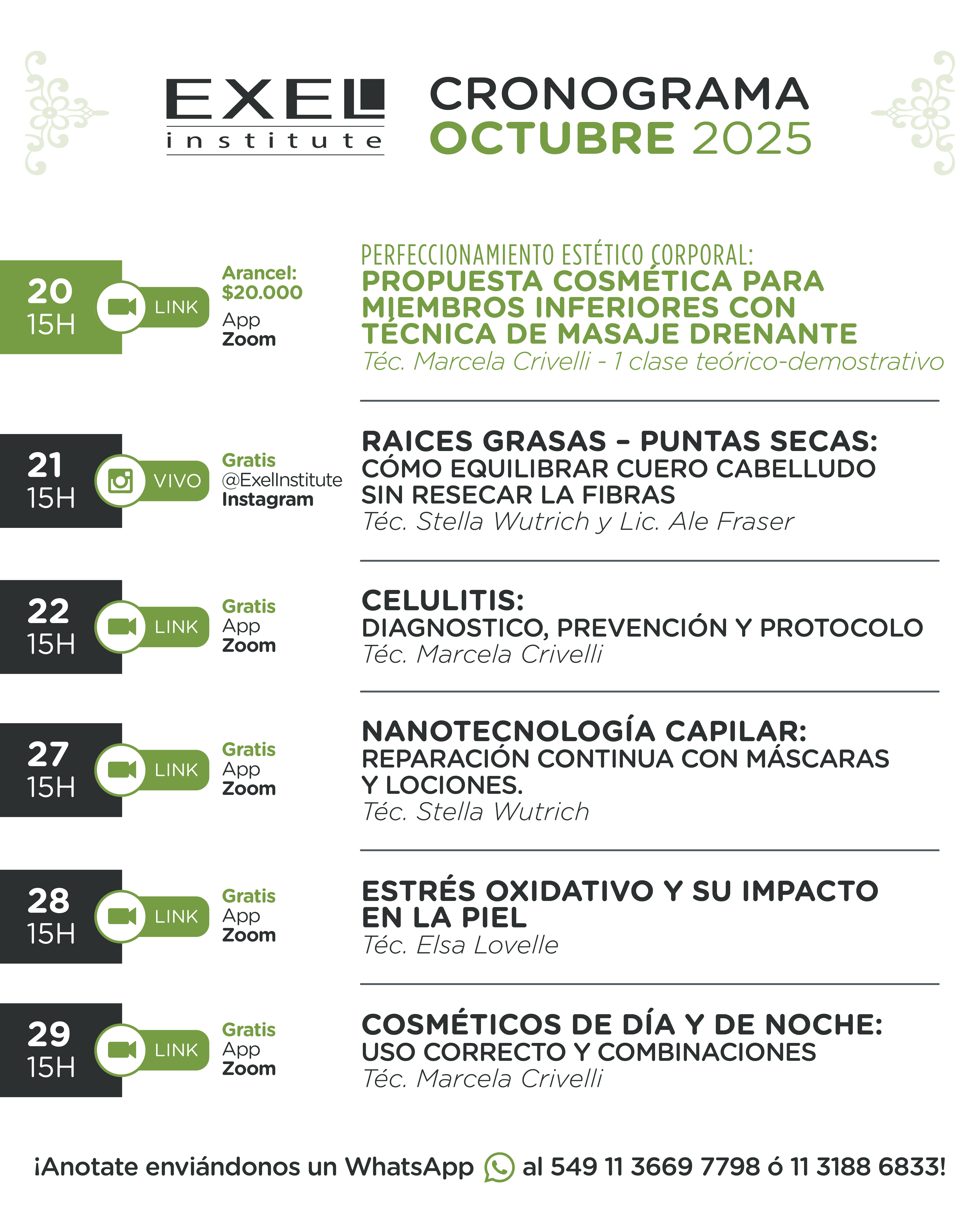 Espacio para el profesional de la estética con un showroom que ofrece todas las líneas de Biocosmética Exel. Ofrecemos atención personalizada, cronograma de formaciones mensual dedicado al desarrollo profesional. Los más destacados expertos esteticistas despliegan sus técnicas, secretos y consejos útiles para superarte día a día!